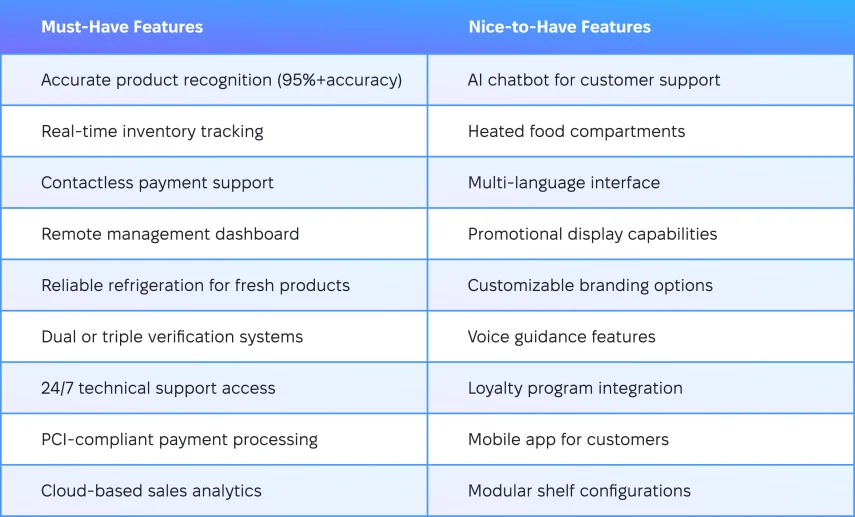 Ta szczegółowa lista kontrolna zawiera wszystko, co musisz wiedzieć przed zakupem maszyn vendingowych z AI — kluczowe technologie, wymagania techniczne i lokalizacyjne, ostrzeżenia dotyczące dostawców oraz praktyczne wskazówki, które pomogą Ci podjąć właściwą decyzję.
